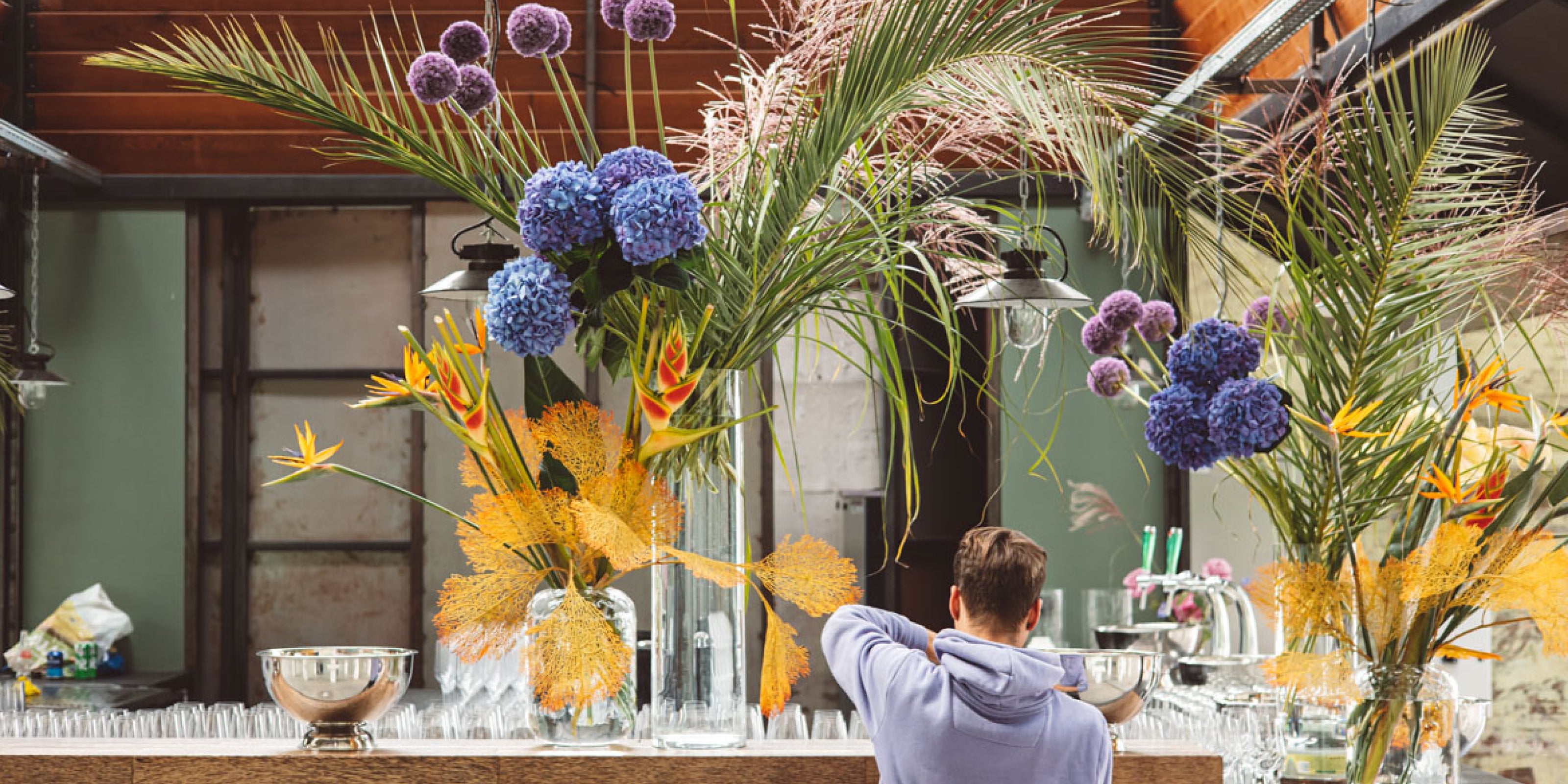 Naast ons Warehouse met binderij hebben we de ‘s Zomers Studio van waaruit we vele mooie decoratieprojecten coördineren. Onder deze studio vallen alle opdrachten op locatie, die verzorgd worden door een gedreven team van ’s Zomers arrangeurs* in samenwerking met de bondagerie en backoffice. Zo kleden we restaurants aan, kantoren, showrooms, boutiques, huwelijken, congressen en events en recent zelfs een schitterende beachclub. Studio, take it away.
