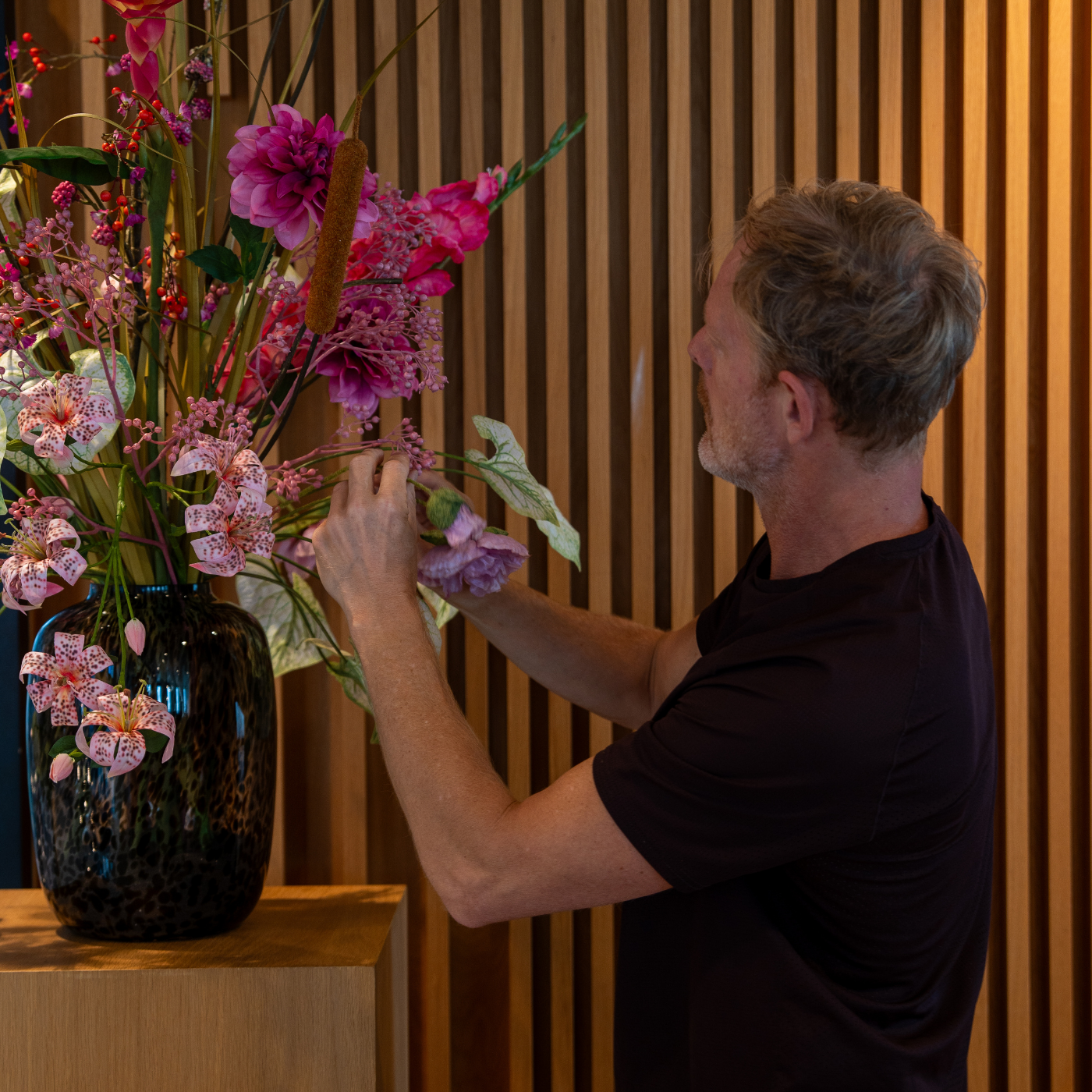 Na akkoord gaan wij all-in. Of je nu kiest voor verse bloemcreaties of voor onze signature artificial stukken: wij regelen alles. Van styling tot bezorging, onderhoud en wissels. Geen zorgen. Alleen maar bloemen die werken.