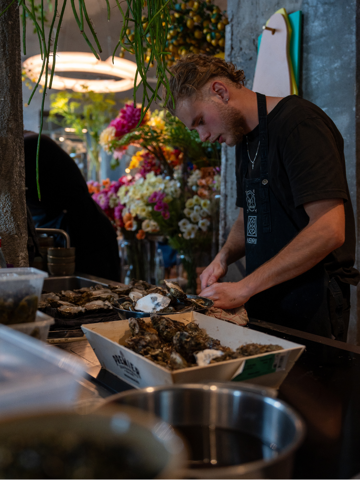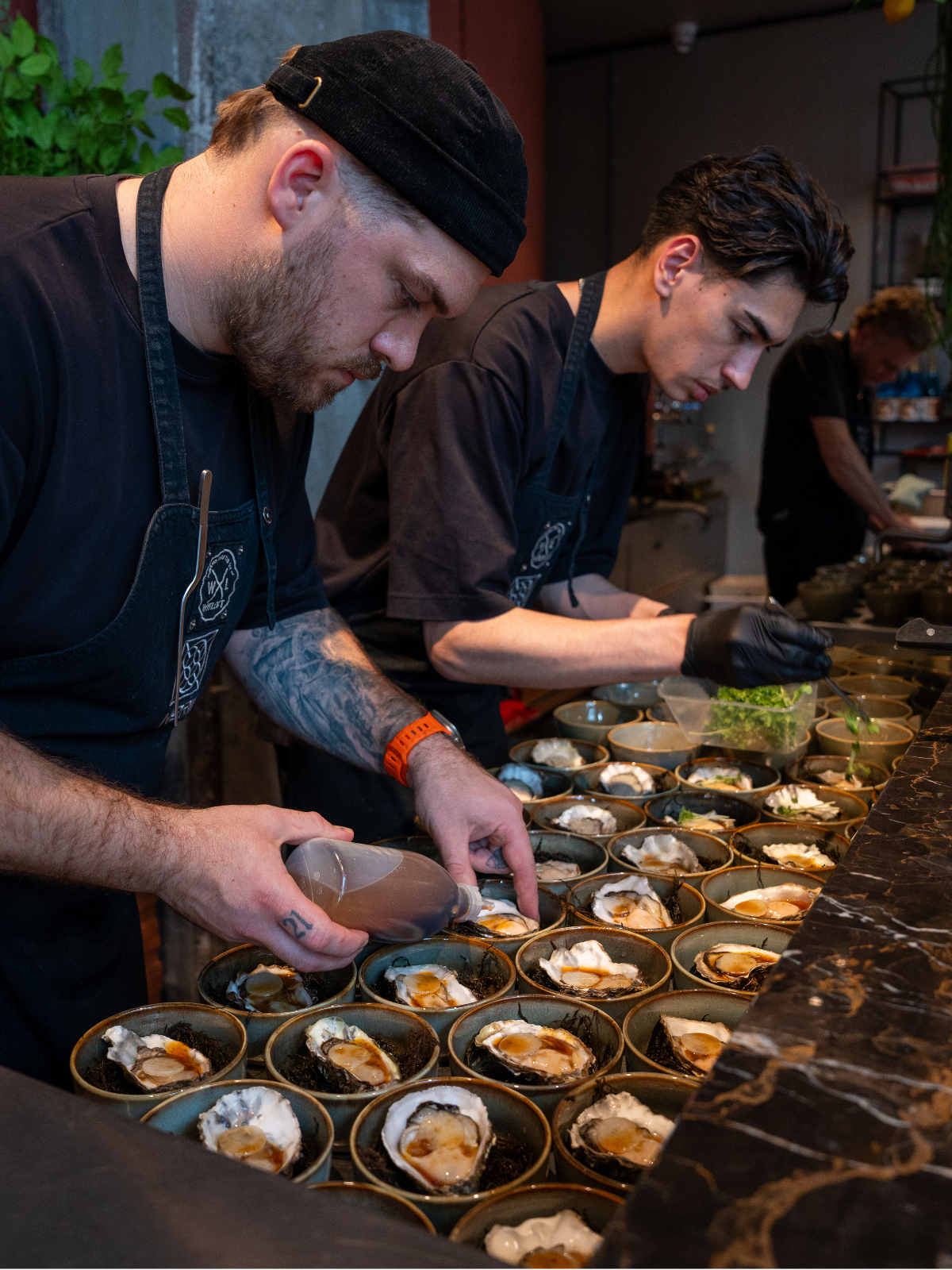 Geboren uit de handen en harten van chef James Maros en hospitality queen Laura Vincken. Hij: vuur, vis en finesse. Zij: flow, warmte en waanzinnige wijnkeuzes. Samen creëren ze een omakase experience die je niet zomaar meemaakt – en nooit meer vergeet.